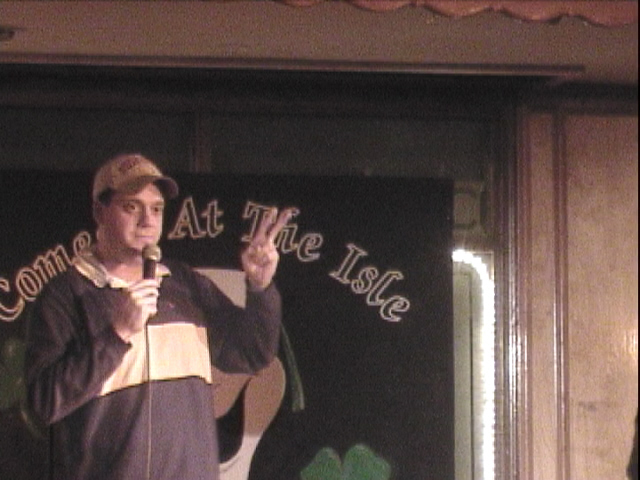 But I did try to get the few folks in attendance involved, to the best of my abilities. Two of the guys sitting just in front of where the camera was situated are taking Rich Gustus' 'Comedy 101' class -- Rich is the emcee on Wednesday nights at the Emerald Isle, and I went through his class last fall. So, as I made my way onstage, I decided to chat a bit with those guys -- you know, form that all-important comic-audience bond. Work the crowd, as it were.