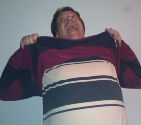 I decided one dead-simple costume would be to dress up as a rugby player. I've got the rugby shirts -- oh believe me, I've got the rugby shirts -- so I figured I'd strap on a pair of athletic shorts and some knee-high socks and be done with it. But when I did it felt -- and looked -- as though something was missing.