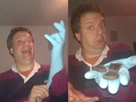 THE EXAM GLOVES. You walk around with a pair of these puppies on, and it doesn't matter what else you're wearing -- people just ASSUME "doctor."
