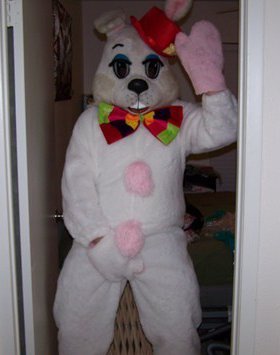 Anyone can hide plastic eggs; I thought the kids in my neighborhood deserved a REAL Easter experience. They should have an ACTUAL bunny rabbit, giving out candy and treats -- just like in the Easter cartoons.