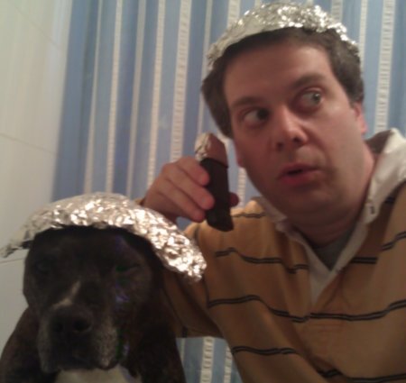 After a week in my very own tinfoil toupee, I felt so free, so un-controlled, that I resolved to protect the rest of my family. I made more hats -- one each for my dog, my laptop computer, and my cell phone.