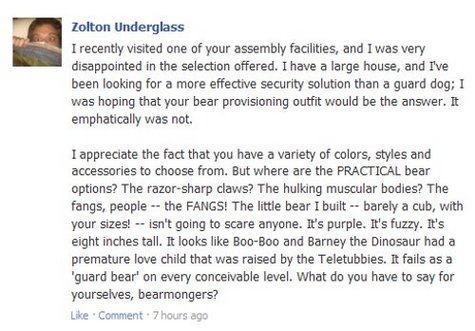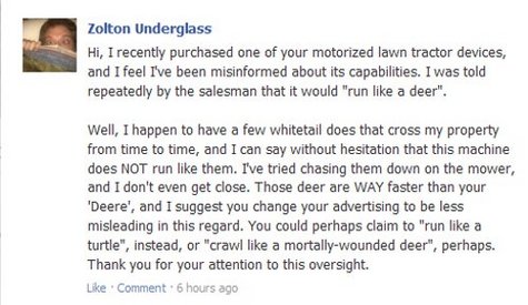 Read on for my animalistic objections -- and the actual Facebook posts on real companies' walls. I aim to succeed where the World Wildlife Fund and Greenpeace have failed. Or at least to get a new lawnmower out of the deal. Or maybe a teddy bear. Have a look.