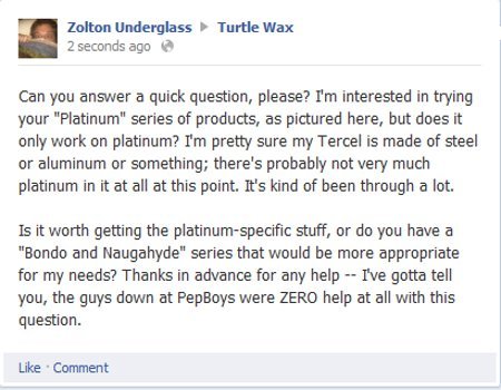 I never thought Turtle Wax would give me any problems. I saw Karate Kid; I know how this stuff is supposed to work. But then the tortoise shiners hit me with a new product curveball: