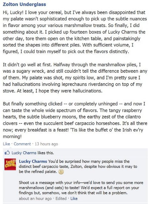 Read on for my quest to buy a better bran flake -- and for my actual posts on the companies' Facebook walls. Soon, you'll be asking yourself, "doesn't a nice bowl of cereal sound good right now?"