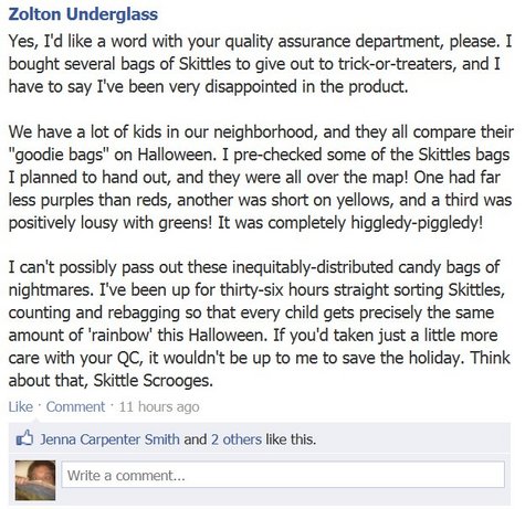 In honor of our dentists' favorite holiday, I took to Facebook to have words with the makers of some of Halloween's most iconic candy-coated confections. Read on to satisfy your spooky sweet tooth -- and for my actual posts on the companies' Facebook walls.