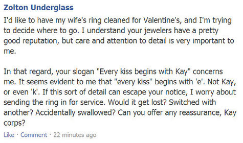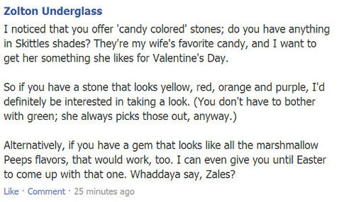 Read on for my bejeweled inquiries -- and my actual posts on the companies' Facebook walls. Take it to heart, fellas: diamonds are forever, but being shut out of the bedroom for buying the wrong trinkets? That's an eternity. Trust me on this one.