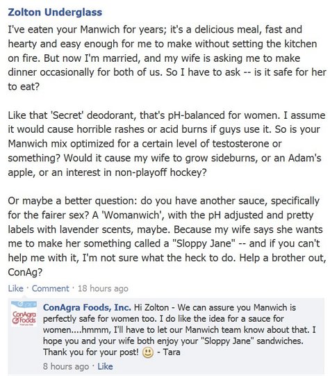 I'm here to open your eyes to the blatant (and the not exactly so much blatant, really) sexism being perpetrated by some of our favorite companies. Read on for the scandalous truth -- and for my actual posts on the companies' Facebook walls. Meanwhile, I'll be over here, burning my underpants in protest.